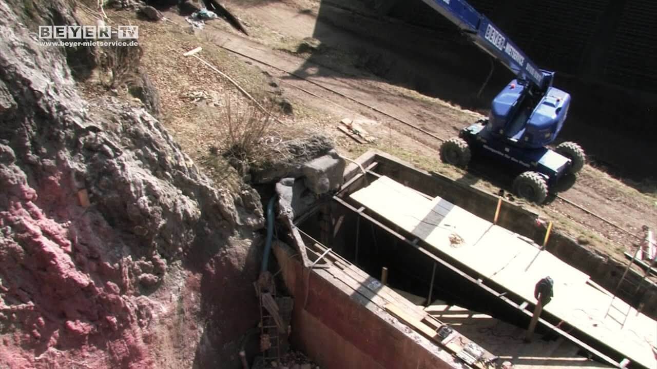 Mit dieser Hubarbeitsbühne sind Sie auch in der Lage Unterflur zu arbeiten. Die Reichweite beträgt hier 4,19 m unter Nullniveau.