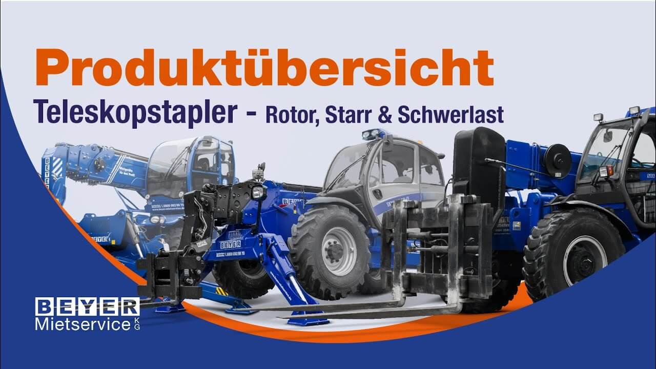 Einige Telestapler aus unserem Verleih kommen vom weltmarktführenden Hersteller Manitou. Sie können einen starren Teleskoplader, einen Rotor oder einen Schwerlastteleskopstapler mieten. Starre Teleskopmaschinen werden gerne im Umschlag oder in der Landwirtschaft eingesetzt. Mit einem Rotor sind Sie sehr flexibel. Sogar an einem Bürgersteig in der Innenstadt kann ein Telelader mit der variablen Abstützung sicher positioniert werden.