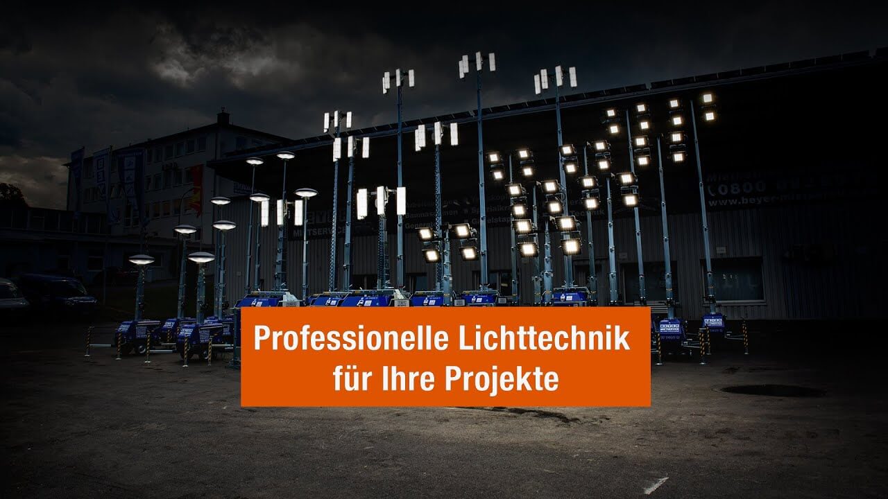 Professionelle Lichttechnik für Ihre Projekte! | Jetzt mieten!Stationäre Lichtmasten (Lightcubes) stellen mit blendfreien LED-Scheinwerfern die großflächige Ausleuchtung von Veranstaltungsarealen, Parkplätzen, Industriehöfen und Großbaustellen sicher. Auf Festivals, Sportveranstaltungen, im Straßen- und Wegebau, Gleisbau und auf Stadtfesten werden diese Lighttower nicht selten in großer Anzahl und über ein sehr weitläufiges Gebiet hinweg zum Einsatz gebracht. Digitalsteuerung, Timerfunktion, Dämmerungssensor, Diebstahlsicherung und ein großvolumiger Kraftstofftank gewährleisten dabei die unkomplizierte Inbetriebnahme und Überwachung von einer Person. Lichtgiraffen auf Anhängerfahrgestell eignen sich ebenfalls für die Langzeit-Ausleuchtung großer Flächen. Lichttechnik auf Handfahrgestell wird bevorzugt bei der partiellen Beleuchtung von z. B. Parkplätzen, Partys, kleineren Baustellen etc. zum Einsatz gebracht. Elektrisch betriebene Geräte sind aufgrund ihrer Geräuscharmut besonders für den nächtlichen Einsatz in Wohngebieten oder in lärmempfindlichen Bereichen, z. B. für Film- und Tonaufzeichnungen, Theatervorstellungen und Sporttuniere geeignet. Gleichzeitig lassen die emissionsfreien Geräte in schlecht belüfteten Bereichen, z. B. Tunnels und Kellerräumen in Betrieb nehmen.