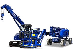 Mit 300 kg Tragkraft und 2-Personen-Zulassung generiert die Gelenkteleskopühne 15,90 m Arbeitshöhe und 8,15 m seitliche Reichweite. Die maximale Übergreifhöhe beträgt 7,40 m. Hindernisse wie Gebäudekanten, Vorbauten oder Balkone lassen sich bis zu diesem Punkt per Teleskoparm waagerecht übergreifen.