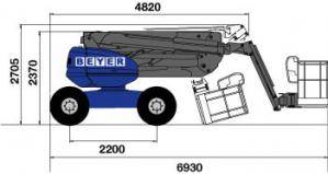 Die Gelenkbühne mit Allradantrieb, drei Lenkarten, großem Arbeitskorb, proportionaler Plattformsteuerung, grobstolliger Bereifung und einer Steigfähigkeit von 40 % bietet einen sicheren Höhenzugang im Außenbereich. Die Ausstattung wird durch eine Neigungsentriegelung und eine stufenweise zu regulierende Drehzahl komplettiert. Neben der Sicherheitsausstattung in Form von einem Notstopp-Schalter im Arbeitskorb und am Oberwagen sowie akustischen und optischen Signalen bei Überlast, Neigung und Gefälle profitieren Anwender durch ein zusätzliches Einklemm-Schutzsystem im Korb.