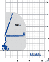 Die Diesel-Gelenkhebebühne GTB 160 D+ bietet Anwendern eine maximale Tragkraft von 400 kg. Bis zu drei Personen sind im Arbeitskorb, der zudem mit drei Eingängen ausgestattet ist, zugelassen. Die maximale Arbeitshöhe von 16,21 m und die maximale seitliche Reichweite von 8,44 m in Kombination mit dem um 360° schwenkbaren Oberwagen sorgen für einen flexiblen und effizienten Höhenzugang. In unserem Datenblatt finden Sie weitere Daten und Lastdiagramme zur Diesel-Gelenkbühne.