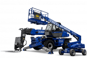 Die Korbsteuerung verfügt über zwei Joysticks. Während mit dem einen Joystick die Fahr- und Lenkfunktion bedient werden, wird mit dem zweiten Joystick das Anheben, Absenken und Schwenken des Hauptauslegers gesteuert. Über einen Schalter wird die Funktionsgeschwindigkeit ausgewählt. Es steht ein Kriechgang für Fahrt-, Hebe- und Schwenkfunktion zur Verfügung. Das ist vorteilhaft in Bereichen, die präzise Maschinenbewegungen erfordern.