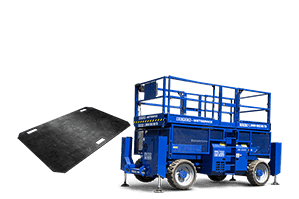 Die Longdeck-Scherenbühne manövriert mittels geländetauglicher Ausstattung auch sicher und kontrolliert auf kompliziertem Baustellengelände. Die Ausstattung umfasst einen Allradantrieb mit permanenter Traktionskontrolle, eine Pendelachse und eine schaumgefüllte Geländebereifung. Das reibungslose Überfahren von Unebenheiten wird durch die Bodenfreiheit von 0,36 m unterstützt. Mit einer Steigfähigkeit von 50 % ist diese Scherenbühne auch auf anspruchsvollem Terrain sicher unterwegs.