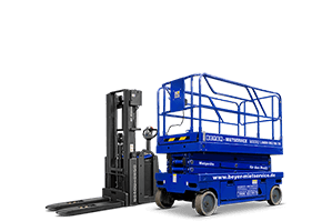 Elektro Scherenbühne mieten | BEYER-Mietservice KGDas Zusammenspiel aus geringem Wenderadius und hydraulischer Steuerung bietet ein kontrolliertes und feinfühliges Manövrieren der Elektro-Scherenhubarbeitsbühne in beengten Bereichen. Ein integrierter Neigungsmesser unterstützt die Sicherheit beim Einsatz. Wird eine Neigung ab 3° erreicht, werden automatisch die Funktionen Fahren, Heben und Senken gestoppt. Ein Lochfahrschutz, der beim Heben der Plattform ausgefahren wird, reduziert die Bodenfreiheit und sorgt damit für Stabilität. Für den Fall der Fälle verfügt die Bodensteuerung über einen Notablass.