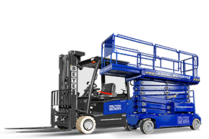 Elektro Scherenbühne mieten | BEYER-Mietservice KGAlle Scherenbühnen vom Typ SB 171 E sind mit weißen, nicht markierenden Vollgummireifen ausgerüstet. Es werden also keine Fahrspuren auf dem Boden hinterlassen. Die Steuerung der Fahr- und Hubfunktionen erfolgt proportional. So sind Sie wendig und präzise unterwegs. Die maximale Fahrgeschwindigkeit beträgt 2,4 km/h.