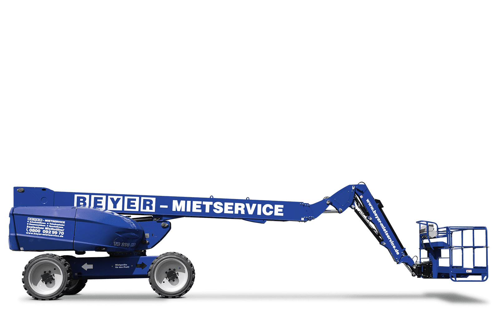 Unterflur-Arbeiten mit Teleskopbühnen von BEYER-MietserviceDurch die Endlosdrehung des Oberwagens und die maximale seitliche Reichweite von 21,45 m ist ein mehrfaches Umstellen der Maschine nicht notwendig, weil Bediener bei diesem Teleskophubsteiger von einem enormen Arbeitsbereich profitieren. Das spart Zeit beim Einsatz. Dank der Bodenfreiheit in Kombination mit der Geländegängigkeit und der Steigfähigkeit von 40° stellt unwegsames Baustellenterrain kein Hindernis für diese innovative Arbeitsbühne dar. Flexibilität beim Verfahren der Bühne bieten die drei Lenkarten (Vorderrad-, Allrad- und Diagonal-Lenkung). Bei dieser Teleskopbühne überzeugt auch die stufenweise hydraulische Drehzahlregulierung des Vier-Zylinder Kubota Dieselmotors V2403-M, die für einen reduzierten Kraftstoffverbrauch und einen reduzierten Geräuschpegel sorgt.