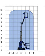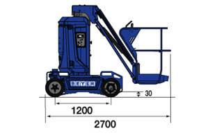 Die Mastbühne TMB 102 E II bietet in beengten Arbeitsbereichen eine optimale Manövrierfähigkeit. Aufgrund der Tatsache, dass diese Mastbühne bei Drehbewegungen keinen seitlichen Überhang hat und zugleich mit superkompakten Baumaßen punktet, passt sie nicht nur durch Standardtüren, sondern kann auch in besonders beengten Bereichen eingesetzt werden. Mit einem Leergewicht von unter 2.700 kg gehört die Teleskopmastbühne zu den Leichtgewichten, die auch auf lastlimitierten Flächen agiert. Auch der Einsatz auf sensiblen Böden ist dank der Non-marking-Bereifung gegeben. Das niedrige Gewicht bietet überschaubare Punktlasten. Im Datenblatt zur Mastbühne erhalten Sie einen Überblick über alle technischen Daten und Diagramme.