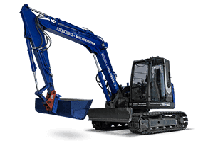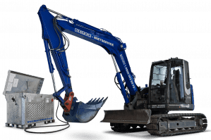 Im Folgenden geht es um den innovativen Kurzheckbagger KB 850 K. Die Maschine hat ein Betriebsgewicht von ca. 8.400 kg und erreicht eine Grabtiefe von maximal 4,47 m. Die maximale Schütthöhe ist bis 5,14 m möglich. Wenn Sie den Kurzheck-Kettenbagger mieten, erhalten Sie ein Erdbewegungsgerät, das mit Gummipads auf den Stahlketten besonders schonend, beispielsweise auf Asphalt, ist. Nähere Infos zu technischen Daten und Lastdiagrammen erhalten Sie im Datenblatt zum Kettenbagger.
