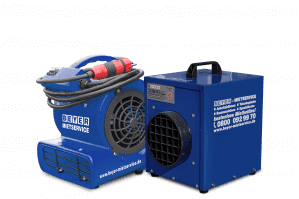 Vorteile bieten der Tragegriff und das geringe Gewicht sowie die kompakten Baumaße. Dadurch ist dieses Elektro-Heizgerät unkompliziert und platzsparend an der gewünschten Stelle positionierbar. Der 150 mm große Lüftungsdurchmesser sorgt für eine ausgewogene Wärmeverteilung und damit ist dieses Heizgerät auch eine sinnvolle Ergänzung zu den Bautrocknern aus unserer Mietflotte.
