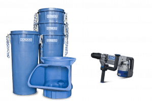 Im Mietumfang enthalten sind Spitz- und Flachmeißel. Wahlweise können zusätzlich auch noch andere Werkzeuge wie z.B. ein Spatenmeißel mit gemietet werden.