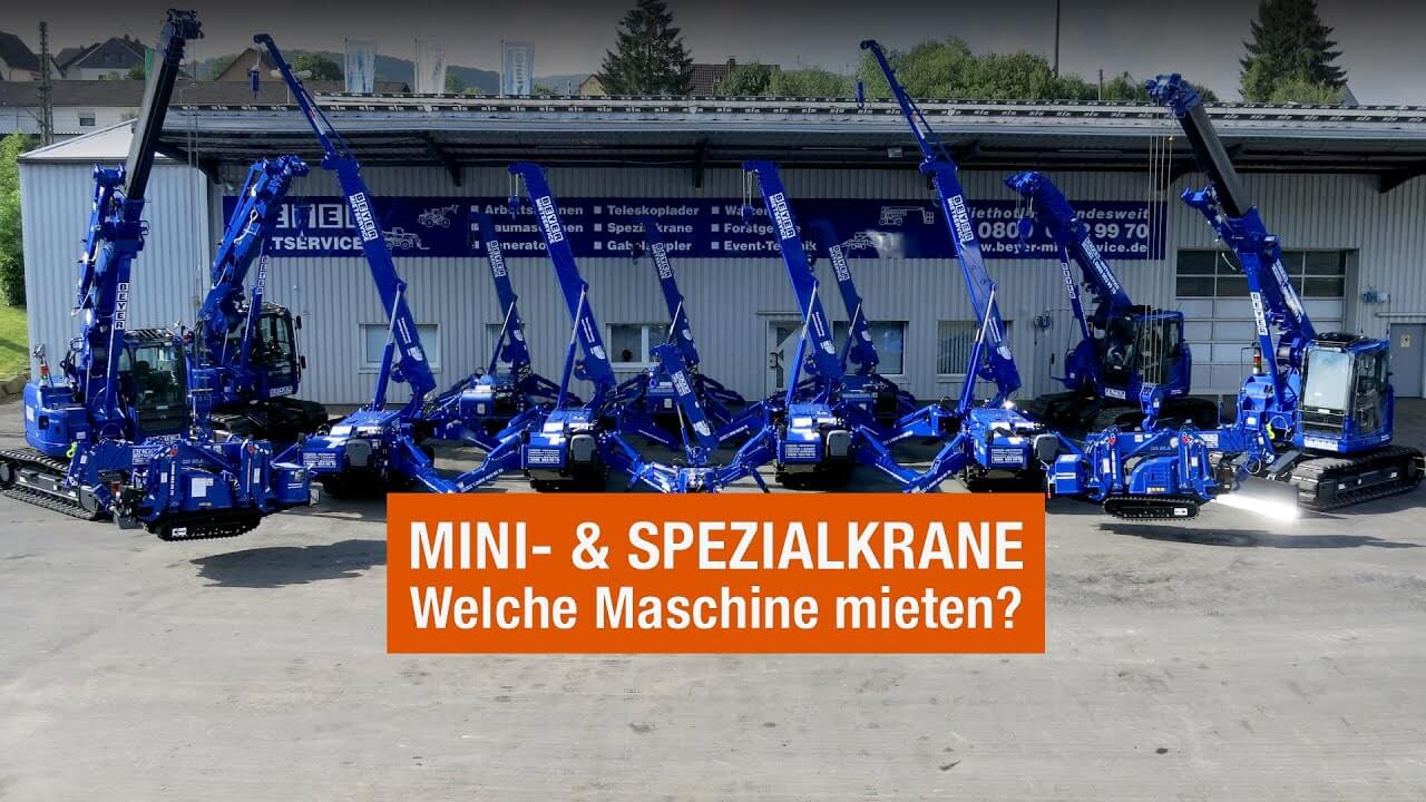 Mini- und Spezialkrane mieten | BEYER-MietserviceBlaue Minikrane aus der Vermietung finden Sie in Aachen an den unterschiedlichsten Orten. Ein Minikran ersetzt Ihnen oft einen teuren Autokran oder einen aufwendigen Baukran. Die kompakten Spezialkrane aus unserem Verleih finden Platz in einer Industriehalle, aber auch an einer Treppe. Die geringen Abmaße und die variable Abstützung eines Minikranes, auch Spinnenkran genannt, sind ein großer Vorteil. Einen Miniraupenkran können Sie wahlweise emissionsfrei mit Strom (400 V) oder Diesel betreiben. Daher kann ein Miniraupenkran in einer geschlossenen Halle in Aachen genauso eingesetzt werden wie im Außenbereich.