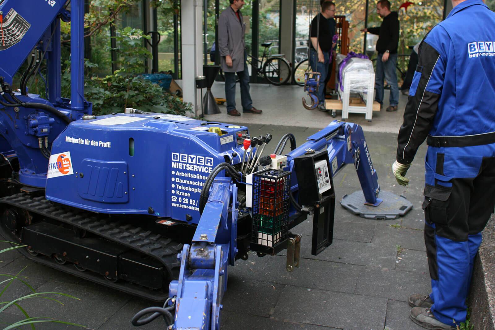 Ein bedeutender Vorteil ist, dass Miniraupenkrane mit einem Kombiantrieb (Diesel/Elektro) ausgestattet sind. So kann der Minikran sowohl im Innen- als auch im Außenbereich eingesetzt werden. Die geringen Abmaße der Mietkrane machen es möglich, dass Sie mit einigen Modellen in Wuppertal sogar in einen Lastenaufzug oder durch eine Normtür passen. Minikrane können auch auf einem Flachdach oder in einem Parkhaus Lasten bewegen. Mit der variablen Abstützung kann der Miniraupenkran sogar in engen Innenhöfen, an einer Böschung oder einer Treppe sicher positioniert werden.