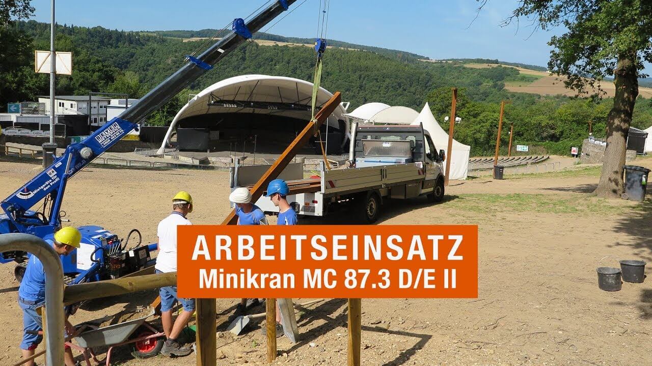 Minikran MC 87.3 D/E II mietenAusgestattet mit einem Kombiantrieb wird der Minikran emissionsfrei mit Elektromotor im Innenbereich und mit leistungsstarkem Dieselmotor im Außenbereich betrieben. Die Tragkraft von 2.820 kg, die maximale Hebehöhe von 8,70 m und die übersichtliche Steuerung sind ein Vorteil des Spezialkrans.