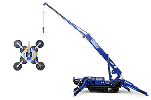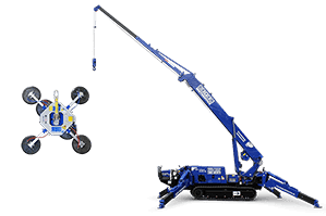 Die Spezialkrane MC 168.4 D/E mit Kranspitze und MC 87.3 D/E mit Glassaugrotor sind Minikrane mit hydraulischen Stützen. Diese Spezialkrane verteilen ihr Eigengewicht durch die breite Abstützung auf eine große Fläche und punkten mit entsprechend geringem Bodendruck pro Quadratmeter.