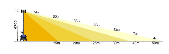 Der LED Lichttower LT 740/7 M ist ein PlugIn-Gerät für den Betrieb über eine externe Stromquelle. Die vier LED-Scheinwerfer mit jeweils 185 Watt sind separat schwenk- und neigbar sowie einzeln schaltbar. Mit diesem mobilen LED-Lichtmast, der eine Mastdrehung von 340° bietet, lässt sich eine Fläche von bis zu 2.500 m² ausleuchten.