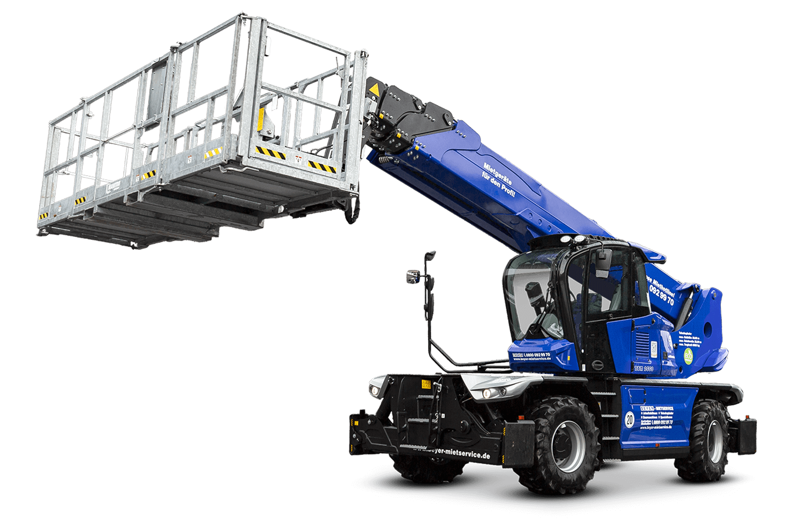 Mit dem Anbaugerät Arbeitskorb 1.000 kg für den TSR 2660 mieten Sie eine ausklappbare Personenarbeitsbühne mit enormer Tragfähigkeit für Montage-, Wartungs- und Installationsarbeiten in großen Höhen. Die Kombination aus geländegängiger Trägermaschine mit endlos drehbarem Oberwagen und großem Arbeitskorb bietet zuverlässigen Höhenzugang überall dort, wo maximale Stabilität und Geländegängigkeit mit außergewöhnlicher Plattformtragkraft und großzügiger Bewegungsfreiheit zusammenkommen müssen. Im Hallen- und Stahlbau, Fassadenbau und bei Sonderprojekten ist der Teleskopstapler TSR 2660 mit 1.000 kg Arbeitskorb eine sichere und effiziente Zugangslösung.