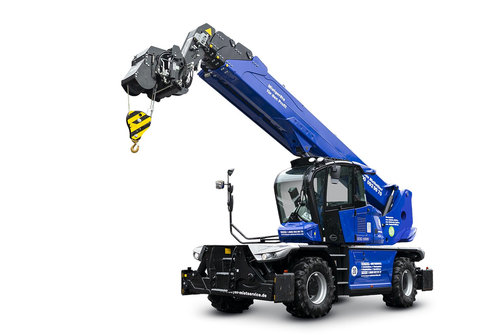 Die Seilwinde mit 6.000 kg maximaler Tragkraft (3.000 kg auf maximaler Hebehöhe) ergänzt das Zubehör des drehbaren Teleskopstaplers und lässt sich dank Schnellwechselvorrichtung und Anbaugeräte-Erkennungssystem E-RECO unkompliziert und sicher montieren. Im Kranbetrieb gelingen dank endlos drehbarem Oberwagen effiziente Lastenhübe in alle Richtungen ohne Maschinenumsetzung. Mit bis zu 25,20 m Hebehöhe und 21,50 m Reichweite im voll abgestützten Zustand können Bauteile punktgenau eingehoben oder auf größere Distanzen bewegt werden. Besonders bei Hebeaufgaben mit eingeschränktem Zugang oder empfindlichen Komponenten wie Technikmodulen, Scheiben oder Brückenteilen sorgt die präzise Seilführung für maximale Kontrolle.