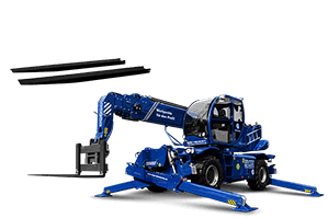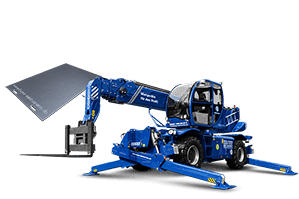 Kontrolle beim Einsatz bietet das Live-Lastdiagramm. Dieses wird durch die automatische Anbaugeräteerkennung nach erfolgter Installation des Arbeitskorbs aktiviert und auf dem 10-Zoll-Touchdisplay angezeigt. Zudem aktiviert die am Auslegerkopf integrierte automatische Anbaugeräteerkennung den zur Ausrüstung gehörenden Lastmomentbegrenzer. Mittels vollvariabler, hydraulischer Abstützung passt sich der Rotor beim Abstützen an die vorhandenen Platzverhältnisse an. Der Motor der Teleskopmaschine erfüllt mit Stage V die modernste Abgasnorm. Neue Einsatzbereiche erschließt der Rotor mit Arbeitskorb durch Verwendung des Twin-Energy-Systems. Mit diesem System lässt sich der Teleskopstapler emissionsfrei in Hallen und weiteren Innenbereichen einsetzen.