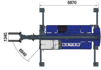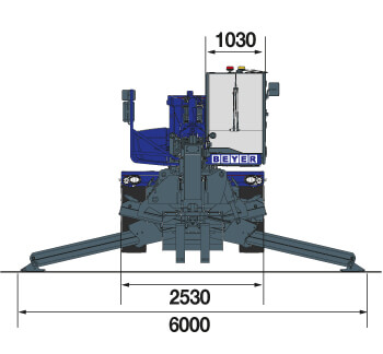 Permanenter Allradantrieb, Pendelachse mit automatischem Niveauausgleich (+/- 8°), robuste Geländereifen und ein 160 kW (218 PS) starker, Stage V-konformer Volvo 4-Zylinder-Dieselmotor mit Rußpartikelfilter (DPF) sorgen im Zusammenspiel für eine gute Performance auf jedem Terrain und bei bis zu 66 % Steigung. Die nötige Stabilität beim anspruchsvollen Lastenhub wird durch das Eigengewicht von 23.660 kg sowie eine bis zu 6 m breite Abstützung generiert. Vollvariable Teleskop-Scherenstützen mit automatischem Niveauausgleich erlauben situative Abstützlösungen mit angepassten Leistungsparametern.