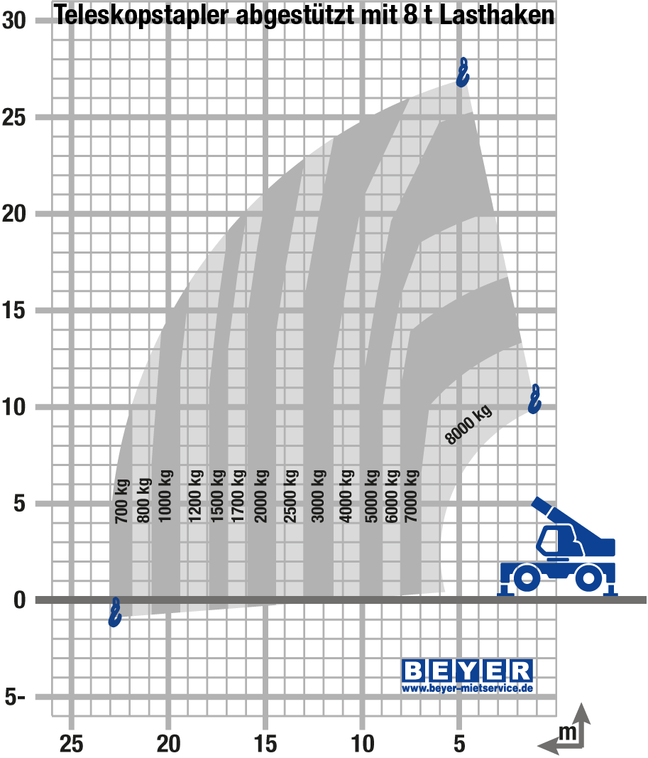Die stufenlose Auslegerverstellung, ein intelligentes Lastmanagement System (LMI) sowie eine feinfühlige Steuerung – optional per Funkfernbedienung – maximieren die Sicherheit und Präzision beim anspruchsvollen Lastenhandling in großen Höhen und beim Materialumschlag auf Baustellen.