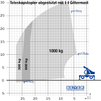 Je nach Bedarf lässt sich der drehbare Teleskopstapler TSR 3060 II mit unterschiedlichen Anbaugeräten ausstatten: Palettengabel, Kranhaken, hydraulische Seilwinde, Gittermastausleger oder 1000-kg-Arbeitskorb verwandeln den Endlosdreher in einen mobilen Kran, eine Hebebühne oder eine leistungsstarke Umschlagmaschine und rüsten ihn damit für wechselnde Anforderungen auf der Baustelle. Passende Anbauwerkzeuge bedarfsgerecht zu mieten bedeutet sofortige Reaktionsfähigkeit vor Ort und maximale Sicherheit durch gerätespezifische Echtzeit-Überwachung der Last- und Reichweitenparameter.