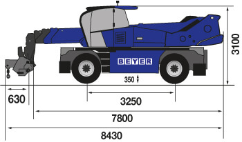 Der endlos drehbare Oberwagen der Trägermaschine ermöglicht es, Lasten aus einer festen Position heraus um 360° zu schwenken, ohne die Maschine umsetzen zu müssen. Es resultieren beschleunigte Arbeitsabläufe, effizientere Montageprozesse und Einsatzmöglichkeiten in beengten, komplizierten Baustellenbereichen. Allradantrieb, Pendelachse mit automatischem Niveauausgleich der Vorderachse, Stollenreifen, 0,35 m Bodenfreiheit und eine Steigfähigkeit von bis zu 41% ermöglichen den kontrollierten Lastentransport über matschigen Baustellenboden und steile Zufahrten – beispielsweise vom Transportfahrzeug zum Montageort.