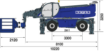 Der 360° endlos drehbare Oberwagen des Teleskopstaplers TSR 3580 ermöglicht flexible Arbeiten in alle Richtungen. Zusätzlich ist der Arbeitskorb um 90° nach links und 90° nach rechts drehbar und lässt sich auf 4,53 m Länge ausziehen, was eine hohe Flexibilität bei parallelen Arbeiten an z. B. Fassaden oder anderen breiten Konstruktionen bietet. In zusammengeklapptem Zustand misst der Korb 2,35 m Länge, 2,12 m Breite und 1,45 m in der Höhe. Eine integrierte Überlastsensorik sowie die automatische Anbaugeräteerkennung unterstützen auf modernste Weise die Sicherheit während des gesamten Einsatzes.