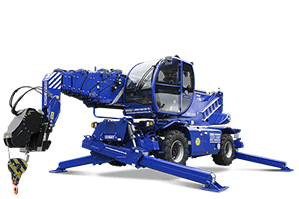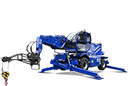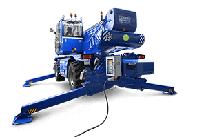 Mit einer Gesamtlänge von 10,40 m, 2,60 m Breite und 3,25 m Höhe bleibt der TSR 3580 mit Gittermastwinde kompakter als schwere Autokrane und agiert per Allradlenkung mobil und wendig in beengten Baustellenbereichen. Permanenter Allradantrieb, Pendelachse, drei Lenkarten, eine Bodenfreiheit von 0,29 m sowie eine Steigfähigkeit von bis zu 62 % ermöglichen Einsätze auf unbefestigtem Untergrund oder auf anspruchsvollem Gelände.