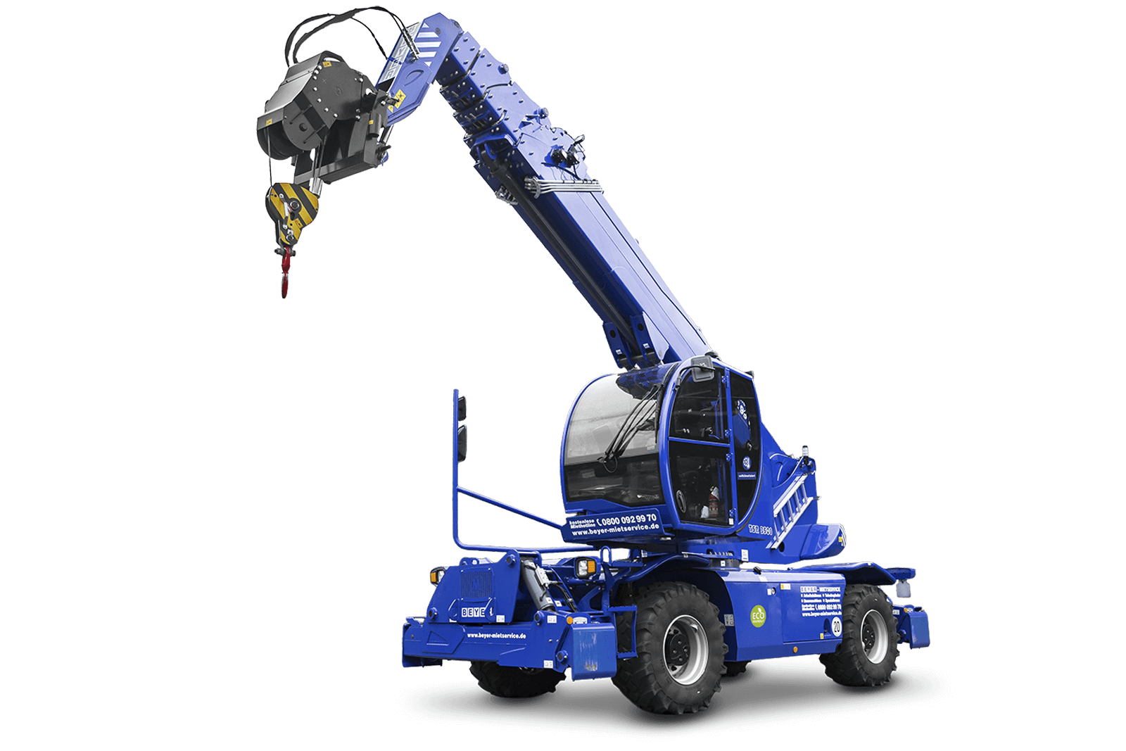 In der Konfiguration mit Seilwinde 8 t bietet der Teleskopkran TSR 3580 im abgestützten Zustand eine maximale Hebehöhe von bis zu 33,50 m (Hakenunterkante) und eine seitliche Reichweite von bis zu 20,00 m. Auf maximaler Hebehöhe wird eine Resttragkraft von bis zu 2.000 kg zur Verfügung gestellt. Der 360° endlos drehbare Oberwagen ermöglicht flexible Kranarbeiten in alle Richtungen, ohne die Maschine neu positionieren zu müssen.