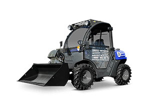 Aufgrund des seitlich integrierten Auslegers und des im Heckbereich befindlichen Motors hat der Teleskoplader eine reduzierte Breite. Einen zusätzlichen Vorteil bei Einsätzen in beengten Bereichen bietet der nur 2,98 m große Wenderadius. Die große Bodenfreiheit in Kombination mit dem 4WD realisieren Teleskopstapler-Einsätze auf unwegsamem Terrain. Das dynamische und reibungslose Handling des Teleporters wird durch den hydrostatischen Fahrantrieb unterstützt. Die schallmindernde Vollkabine mit Heizung schützt den Bediener vor Witterungseinflüssen. Eine Auflistung aller relevanter Daten erhalten Sie im Datenblatt zum TSS 414.