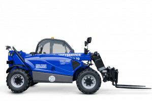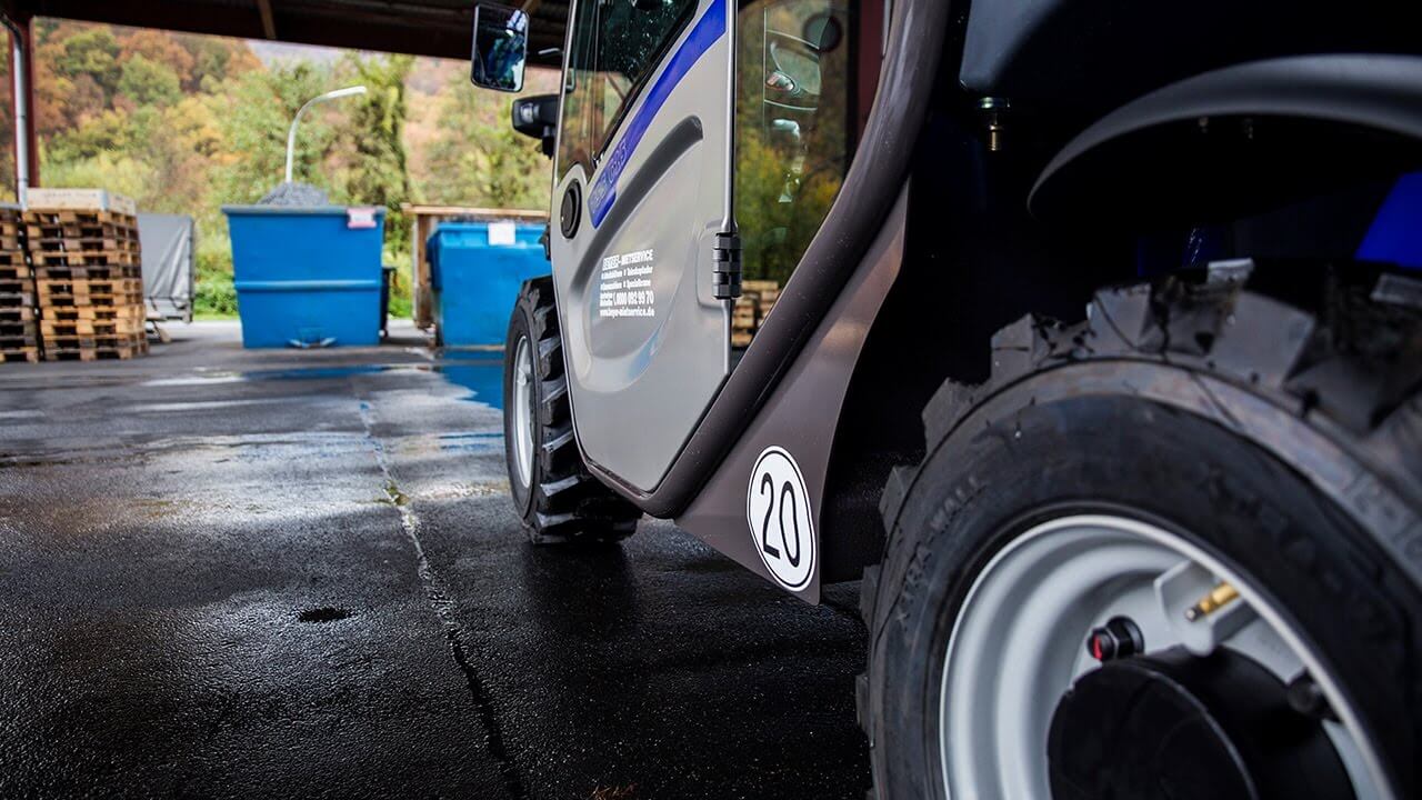 Ebenso überzeugt die Teleskopmaschine mit hoher Schubleistung, gutem Steigvermögen und einer hohen Zuglast. Dank der kompakten Abmessungen agiert die Maschine auch in beengten Lagerhallen und auf Lagerflächen. Eine Bauhöhe von 1,92 m und ein Wenderadius von 3,31 m sorgen dafür, dass der Telestapler mit einer maximalen Tragkraft von 2.500 kg auch in Tiefgaragen und Parkhäusern agiert.