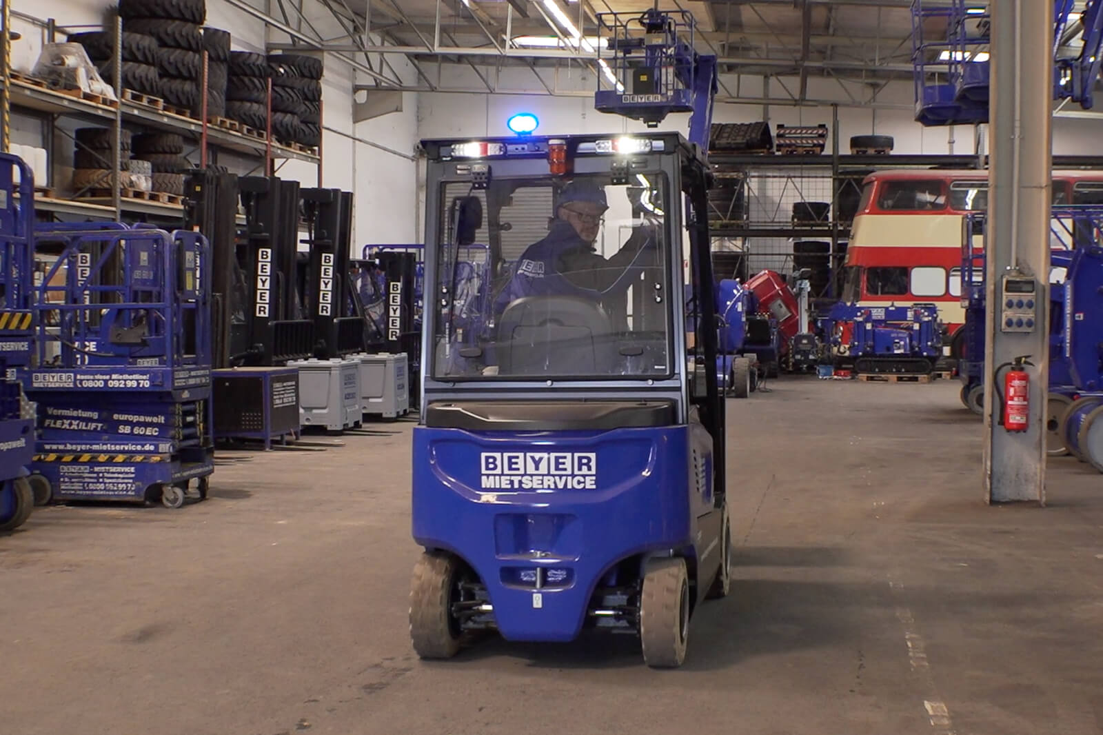 Der blaue Punkt des Warnlichts kündigt einen Stapler hingegen an, noch bevor er zwischen den Regalen hervorsticht – und zwar unabhängig von Umgebungsgeräuschen und aus einer eindeutigen Richtung. Optimal ist eine Kombination aus akustischen und optischen Warnsignalen. Die meisten Stapler lassen sich unkompliziert mit Blue Spot™-Technologie nachrüsten, was auch in der Vermietung ein Vorteil ist. Je nach Einsatzzweck können Flurförderfahrzeuge zur Miete mit bedarfsgerechter Sonderausstattung angeboten werden.