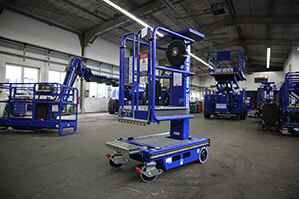 Leise und unauffällig werden sie neben dem laufenden Tagesgeschäft von einer Person in Position und zum Einsatz gebracht. Erreicht werden Bereiche an Wänden und unter Decken in bis zu 4,20 m Arbeitshöhe. Entsprechend sind den Nutzungsmöglichkeiten im Innenbereich kaum Grenzen gesetzt. Da keine leckanfälligen Bauteile wie Hydraulikschläuche verbaut sind, eignen sich die kleinen Vertikal-Bühnen für Bereiche, in denen motorisierte oder elektrisch angetriebene Maschinen nicht eingesetzt werden dürfen oder können. Leise und unauffällig sind sie in Hotels, Kliniken, Kantinen, öffentlichen Einrichtungen und in der Lebensmittelbranche im Einsatz. Auch gegen die Nutzung in Kühlhäusern spricht, anders als bei Akku-Bühnen, nichts. Aufgrund ihrer Kompaktheit kommen diese Low-Level Steiger in schmalen Fluren und Gängen, Nischen und zwischen Mobiliar und Lagerware bestens zurecht. Der Transport per Aufzug und das Unterqueren von Türen – kein Problem. Teppichböden oder andere druckempfindliche Beläge werden dank des leichten Gewichts ohne Probleme befahren.