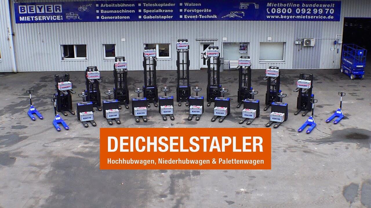 Deichselstapler für effiziente Logistikdienste! | BEYER-MietserviceDeichselgeführt bedeutet, das Flurfördermittel wird über eine mit einem Laufrad verbundene Deichsel fortbewegt und rangiert. Auch die Hubfunktion wird über die Deichsel geregelt: entweder manuell durch Pumpbewegungen, oder, bei elektrischen oder semi-elektrischen Deichselstaplern, über die im Handgriff der Deichsel eingelassenen Bedienschalter.