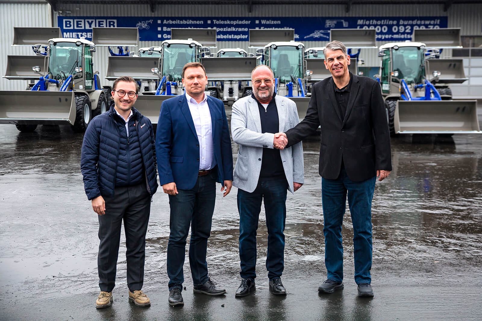 Am 02. Dezember wurden die neuen Weycor-Radlader offiziell an uns übergeben. Für den Übergabetermin durfte unser Geschäftsführer Dieter Beyer Herrn Friedrich Weyhausen (Dipl. W.-Ing. – Referent der Geschäftsführung), Herrn Niels Mansholt (Dipl.-Ing. (FH) – Vertriebsleiter D A CH) und Herrn David Flak (Vertriebsleiter Baumaschinen) an unserem Hauptsitz in Etzbach herzlich willkommen heißen. „Seit 30 Jahren pflegen wir eine gute Zusammenarbeit mit Atlas Weyhausen, die einen wichtigen Beitrag zu unserer wachsenden Struktur leistet“, erklärte Herr Beyer im Rahmen des Termins, der zudem die Gelegenheit für einen kurzen fachlichen Austausch bot.