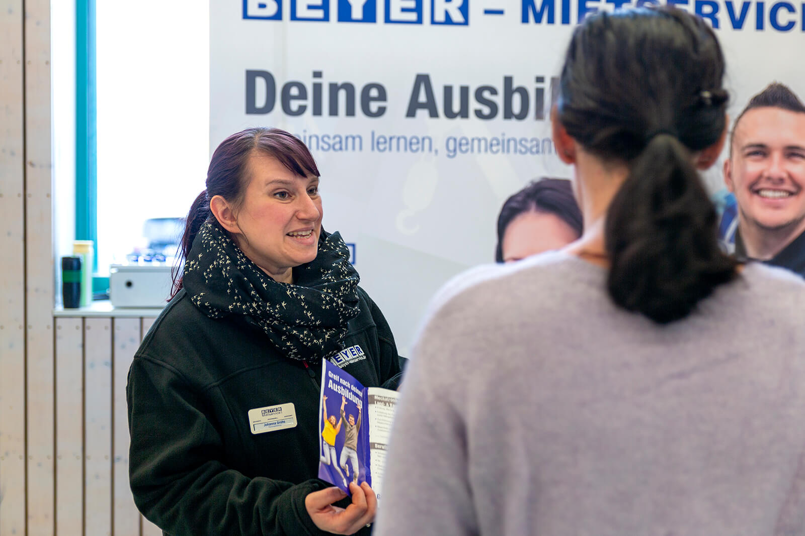 In persönlichen Gesprächen standen unsere Auszubildenden sowie Kolleginnen aus der Personalabteilung für Fragen zur Verfügung und gaben authentische Einblicke in die Ausbildung und den abwechslungsreichen Arbeitsalltag bei BEYER.