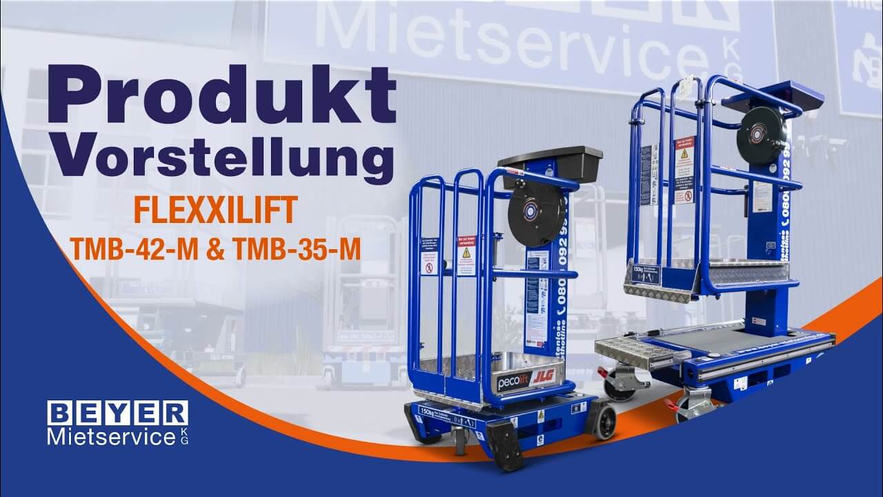 Die Lösung für Arbeiten auf geringen Höhen | FLEXXILIFT TMB-42-M & TMB-35-MVerschleiß- und defektanfällige Bauteile – Hydraulikschläuche, windige Bedientaster etc. – lassen die Mastbühnen hingegen missen. Und hier kommt ihr vielleicht größter Mehrwert: