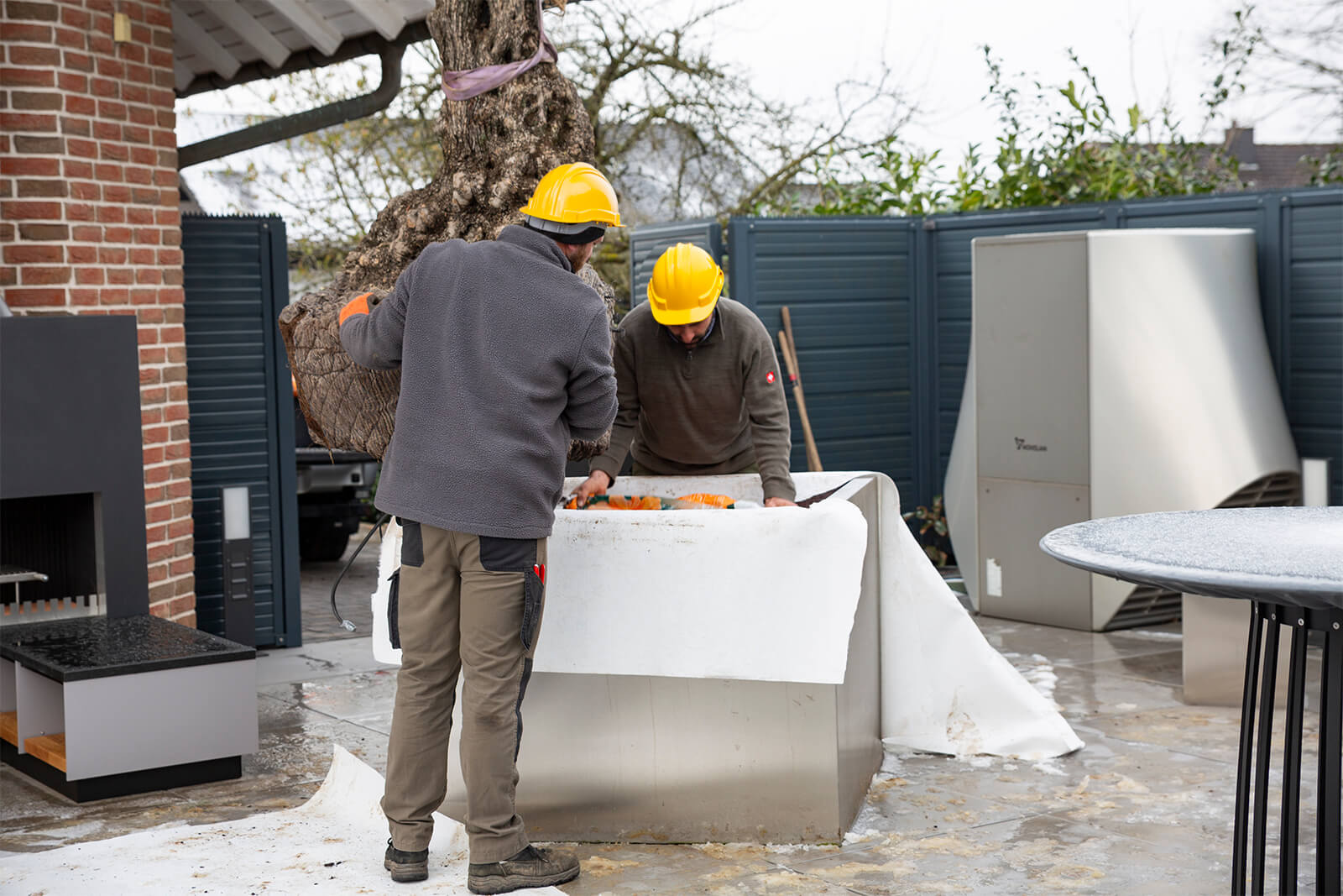 Möglich wurde diese anspruchsvolle Pflanzung erst durch den Einsatz unseres Raupenkrans RC 164.5 D/K II. Beengte Zugangsmöglichkeiten, eine Mauer sowie die erhöhte Terrassensituation stellten besondere Anforderungen an die Projektumsetzung.